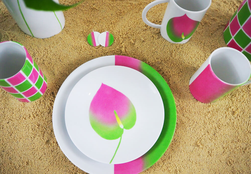 Pink and green anthurium dessert plate