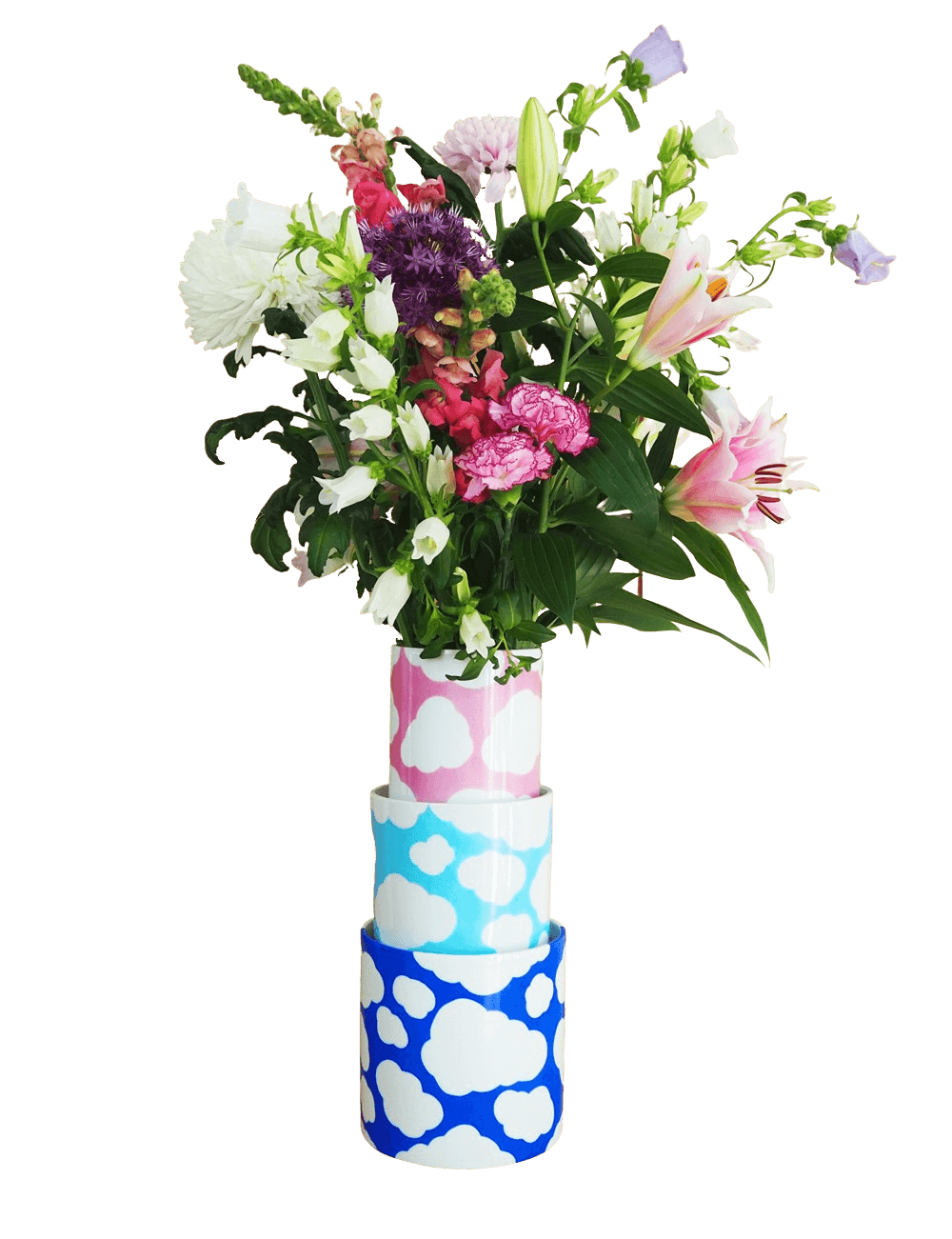 Les vases gigognes sont des cylindres en porcelaine de Limoges de trois tailles différentes qui s’imbriquent les uns dans les autres et qui se suffisent à eux-mêmes de manière indépendante. La trilogie nuages se compose de trois couleurs, le rose, le bleu ciel et le bleu azur, qui s’associent parfaitement et qui saura apporter de l’originalité, de la légèreté à votre intérieur.