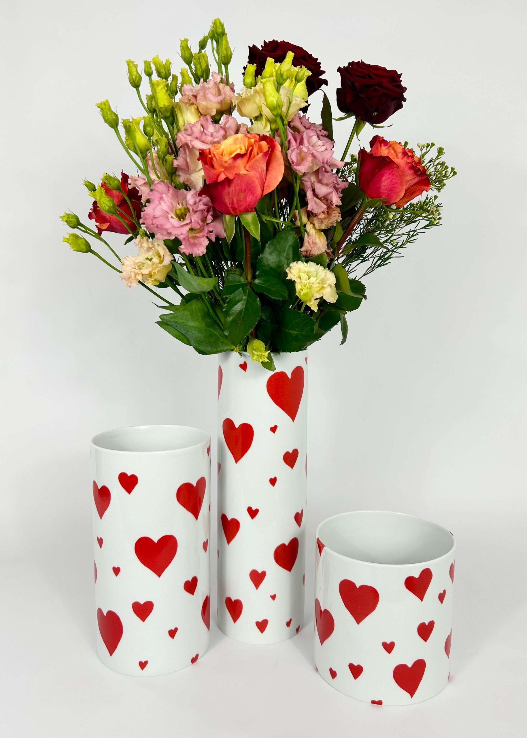 Vase 2 red hearts